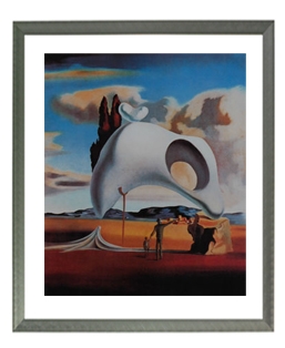 Poster van een kunstwerk door Salvador Dalí, ingelijst in Florentijns zilver aluminium frame, met passe-partout.