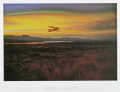 Foto van een vliegtuigje tijdens zonsondergang.
